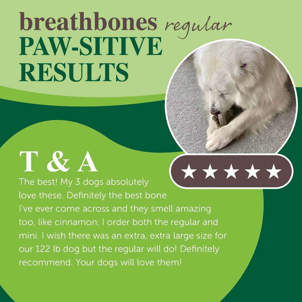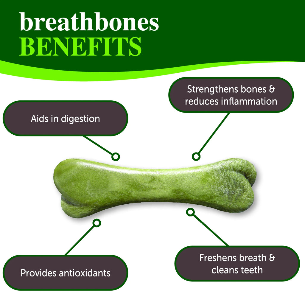 With natural and simple ingredients, these completely plant-based chews improve your pup's dental health, provide a satisfying chew bone for your dog, and also give them extra fresh breath for plenty of kisses.