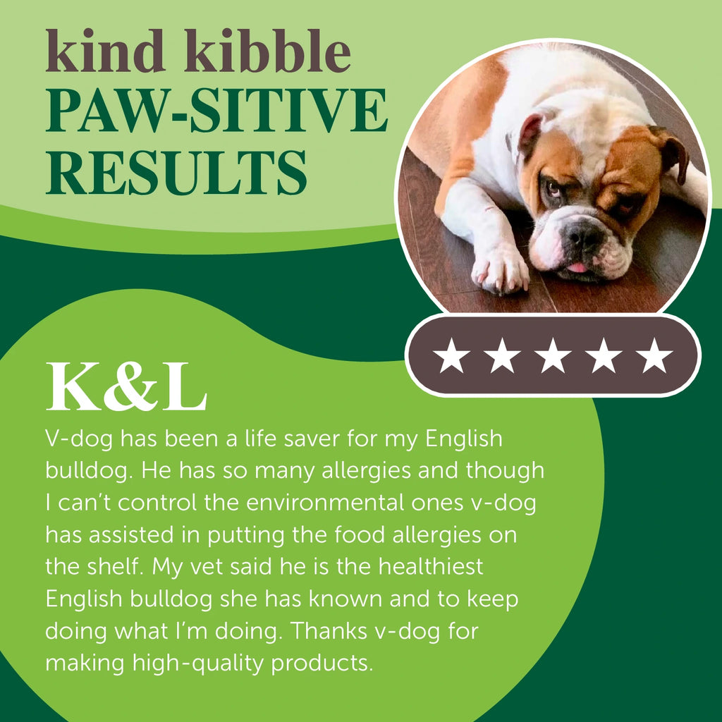 Yes! V-dog kind kibble was formulated by canine nutritionists and experienced veterinarians to meet all AAFCO standards. Our complete and balanced vegan kibble includes powerful superfood ingredients, added taurine, plant-based DHA, and essential omega 3 and 6 fatty acids.